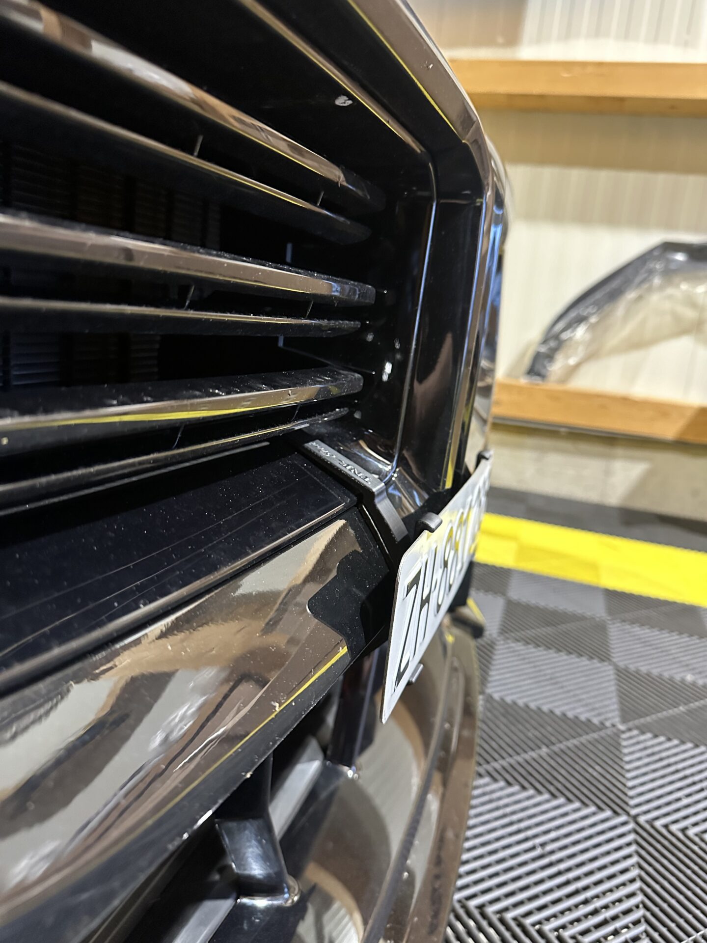 Die Halter werden zwischen den Kühlergrill eingeklammert und so fixiert.